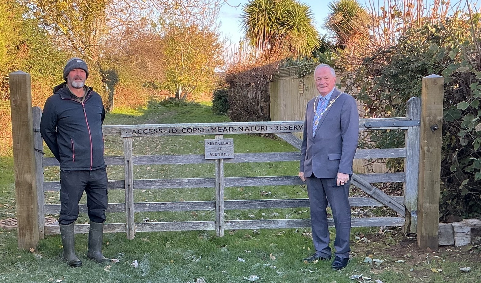 Lake Parish Council Chair, Paul Brading, officially ‘unveiled’ a new gate outside of Copse Mead Nature Reserve, and welcomed back over 90 easy keep sheep, who ‘share’ the mead with other Parishioners, before the land is flailed later in the year.